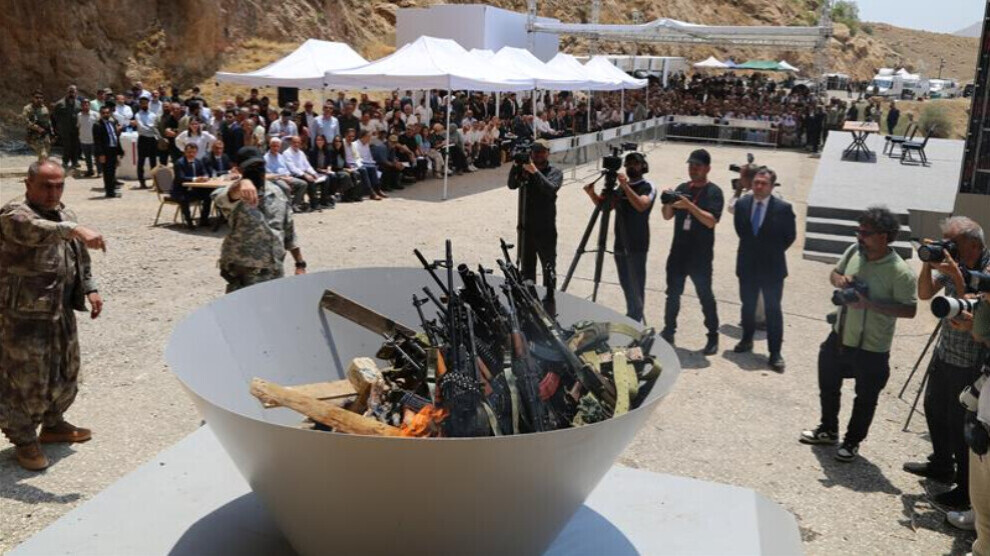 A 30-member guerrilla group, including KCK co-chair Besê Hozat, held a ceremony today in the Şikefta Casenê (Casenê Cave) in the village of Surdaş, in the Dukan district of Sulaymaniyah, following the historic call made by Leader Apo on July 9, and burned their weapons.